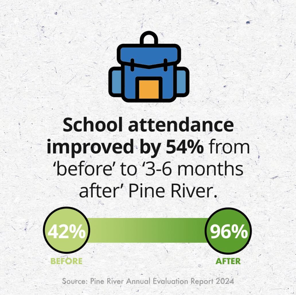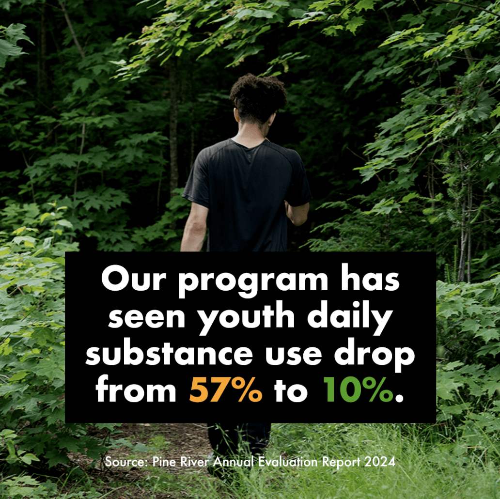 After our program, Pine River youth reduced their substance use, criminality and hospitalizations, and experienced improved mental health, school and work engagement and family functioning. We report these results every year in our Annual Evaluation Report.